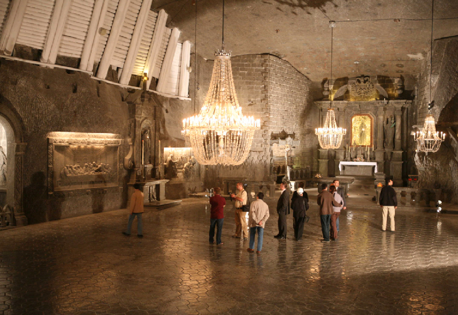 شبكة عميقة من الأنفاق والقاعات المنحوتة في الملح، تُعد من أشهر مواقع التراث العالمي القريبة من كراكوف. تمتد الجولات لمسارات تحت الأرض تكشف تاريخ التعدين وغرفاً ضخمة مزخرفة بالكامل بقطع ملحية منحوتة.